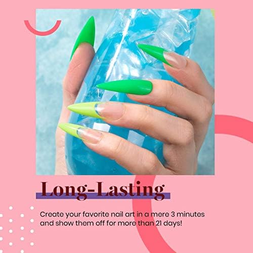 Soak off LED Gel Nail Polish: Neon gel nail polish kit Neon yellow Pink Orange Pastel Baby Blue Sparkle gel polish needs to be cured under LED nail lamp. Base and Top coat required. Average for LED light 60-120 secs, nail dryer 2-4 mins.