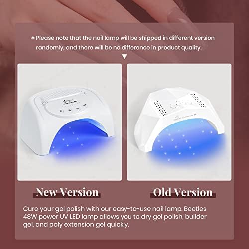 HIGH POWER LAMP: Beetles Soak off UV LED Gel Nail Polish Kit With LED Light Nail Lamp – 6 pcs colors classic Burgundy Red Champagne Gold glitter Nail Polish gel with 48W high power nail dryer to cure fastly all kinds of led gel nail polish, base gel top coat and poly gel nail extension kit. 30 LEDs cuts curing time in half!