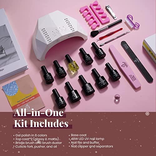 HIGH COST-EFFECTIVE: Full size of Gel Polish Nail Starter Kit, durable Nail Lamp with Nail Art Designs Manicure Tools Essentials Kit, high quality gel nail starter kit diy home for a cost-effective price, guaranteed!