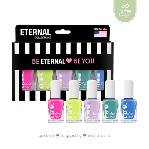 Eternal Collection – 5 Piece Set: Long Lasting, Quick Dry, Mirror Shine Nail Polish – Hardener, Bright and Shiny Finish – 0.46 Fluid Ounces Each (Fun)