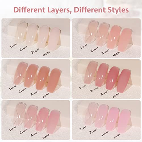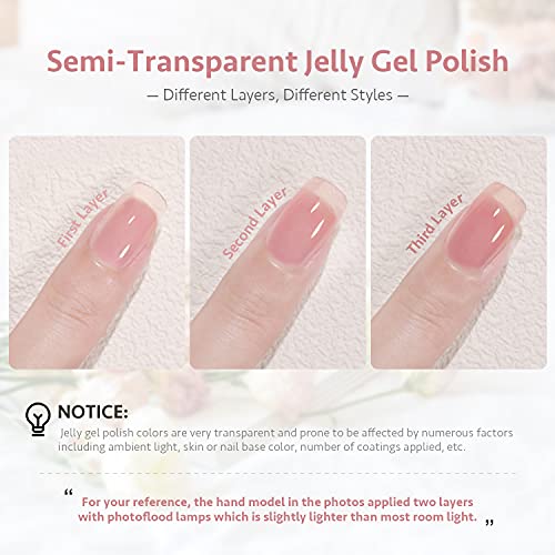 GAOY Jelly Nude Pink Gel Nail Polish Set of 6 Transparent Colors Sheer Gel Polish Kit UV LED Soak Off Nail Polish Gel Varnish