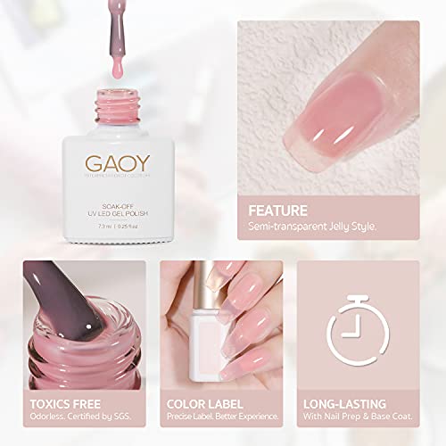 You are currently viewing GAOY Jelly Nude Pink Gel Nail Polish Set of 6 Transparent Colors Sheer Gel Polish Kit UV LED Soak Off Nail Polish Gel Varnish