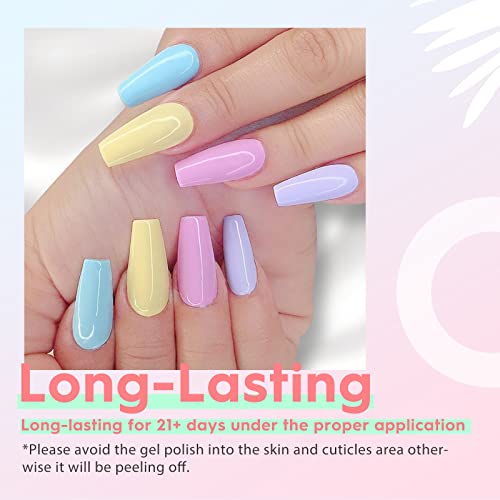 Environmental & Healthy: The 6pcs popular pastel colors gel polish made from 9 Toxin Free Ingredient, keeping safe and low odor. No harsh ingredients or adhesives lead to damaged nails.