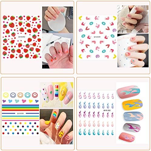 Nail sticker patterns include flowers, fruits, animals, plants, heart, leaves and flame, nail art decoration set for women and little girls to DIY their own nail styles as they like.