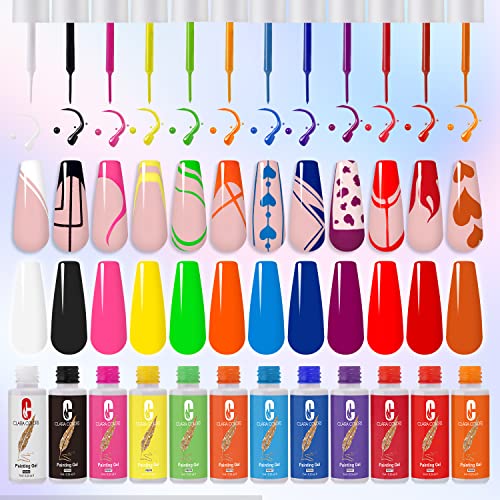 Painting Gel Nail Polish Set – Gel Paint Nail Art Kit 12 Color Hot Pink Yellow Green Blue Curing Nail Liner Gel Swirl Painting Pulling Drawing Nails Built Thin Nail Art Kit UV LED Required for Christmas Nail Art Design&Nail Salon DIY Manicure Kit