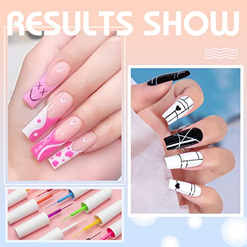 🌸WHY YOU CHOOSE IT: The Gel Nail Painted Kit comes with a line nail brush attached to the cap for steady control and drawing. You can save your time to wash or clean the drawing liner pen brush. No shrinkage, no flow of gel, this Gel Liner Nail Art is full color and easy coloring.