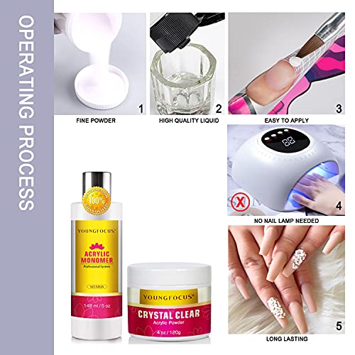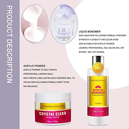 Youngfocus 4oz Clear Nail Acrylic Powder Professional Nail Art Powder 5oz Liquid monomer Acrylic Liquid Monomer for Nail Extension French Nails